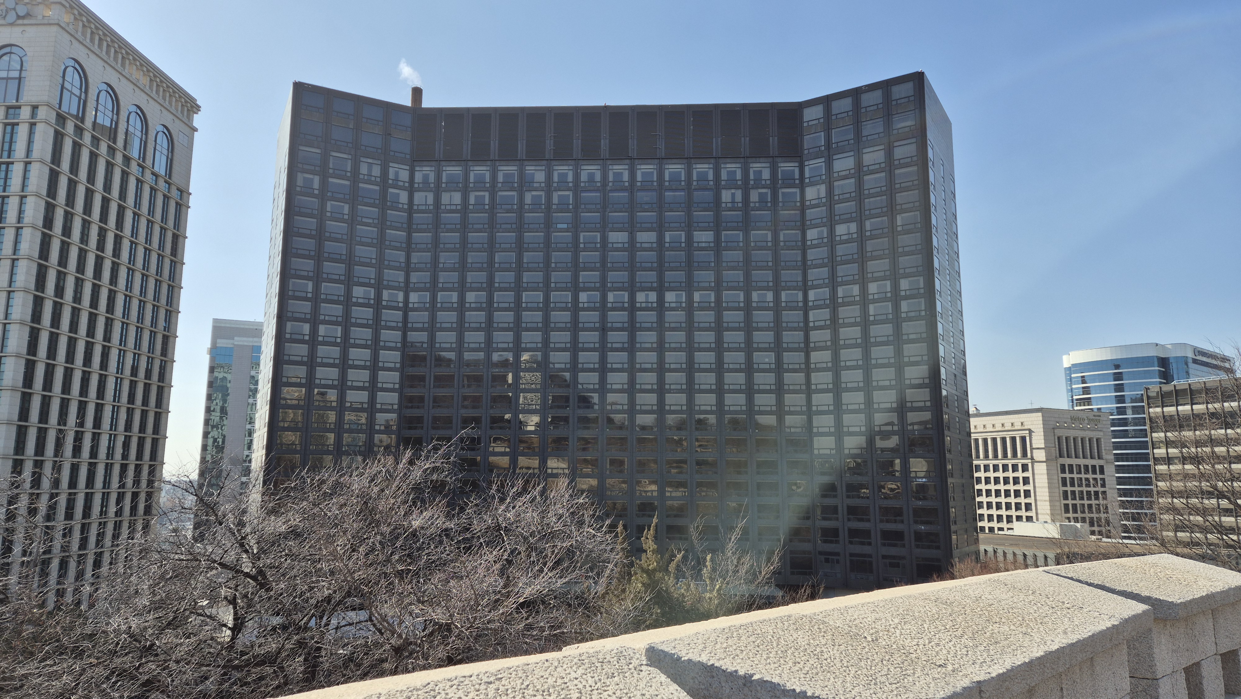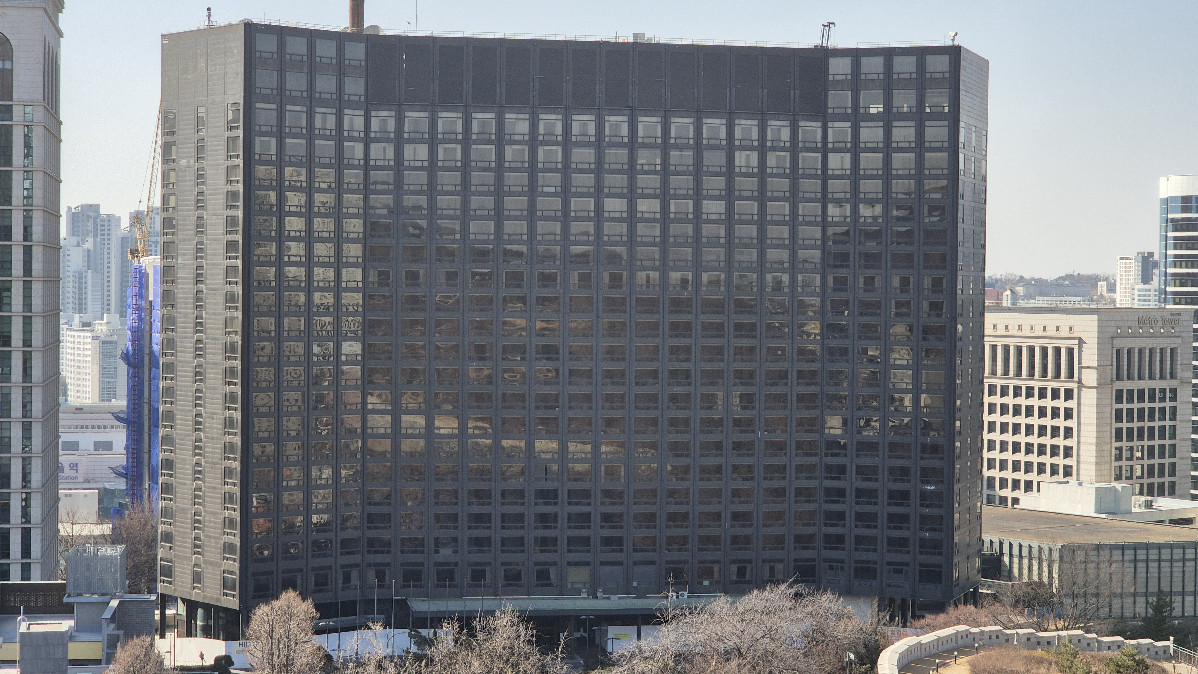 ▲ 밀레니엄 힐튼 서울 호텔은 완공 당시 콘크리트 일색이었던 한국 건축에 획기적인 돌연변이 와도 같았던 알루미늄 커튼월 방식으로 지어졌습니다. 건물 외벽을 마감한 특수 알루미늄은 국내 기업인 효성에서 제작했습니다. 지은 지 40년이 지난 지금 보아도 세련된 외관이라는 느낌이 듭니다.