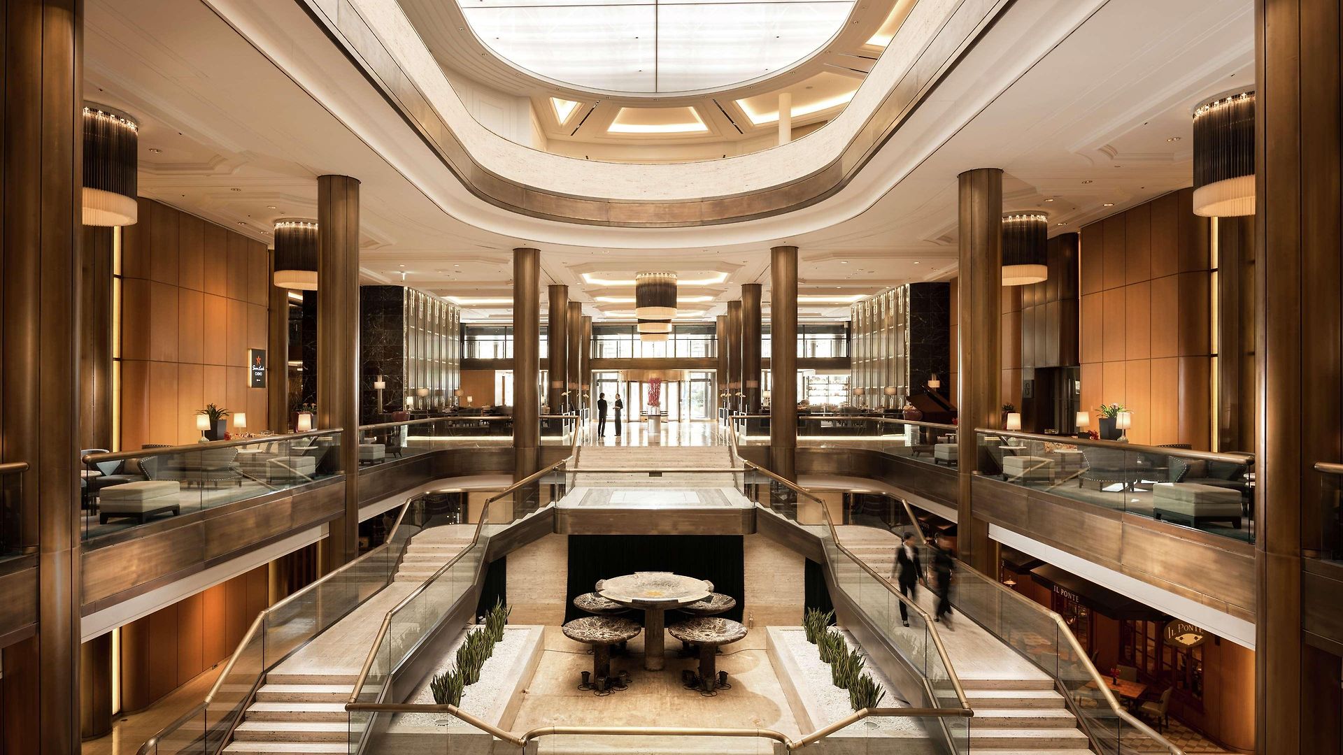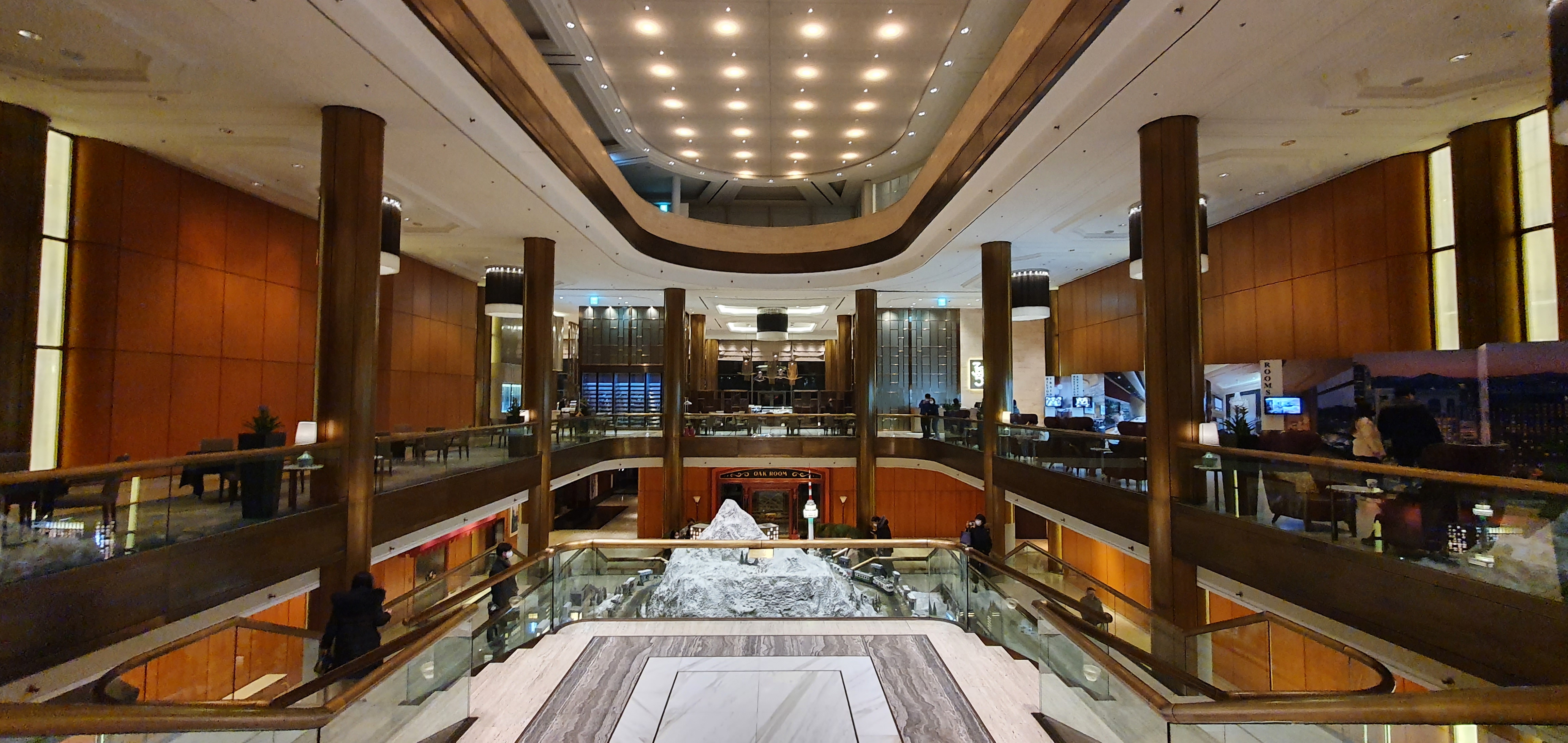 ▲ 유명한 힐튼 호텔의 6미터 높이의 메인 로비는 이탈리아산 대리석과 미국산 참나무 베니어 등 당대 최상의 소재를 사용했고 기둥에 있는 동판은 국내 방위 산업 기업인 풍산이 납품하고 일본 장인이 직접 닦아내어 만들었다고 합니다. 이 로비는 호텔의 재개발 후에도 보존되기로 결정되었습니다.