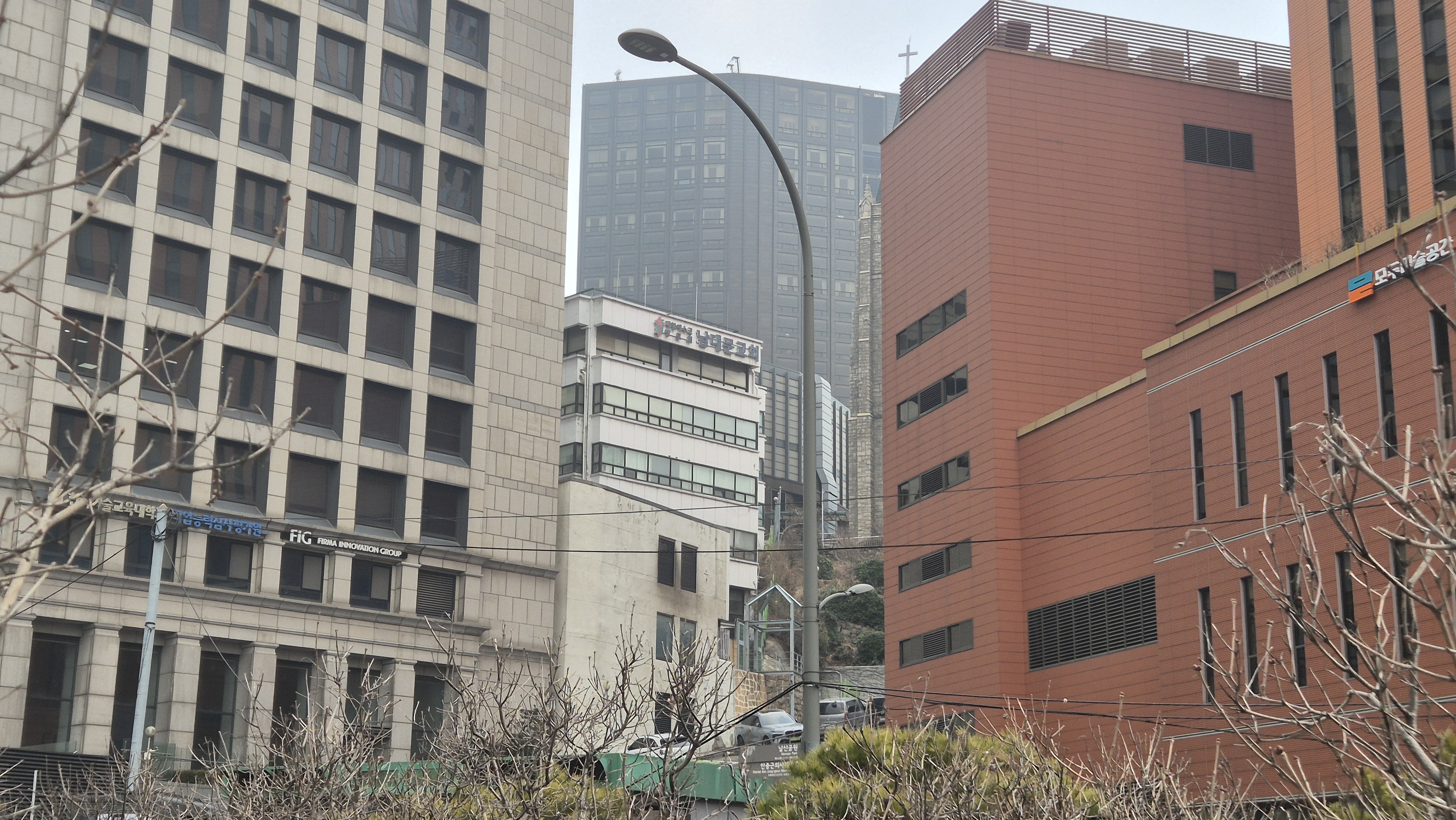 ▲ 서울스퀘어 빌딩(구 대우빌딩)과 메트로타워 사이로 남대문 교회와 밀레니엄 힐튼 서울 호텔의 모습이 보입니다. 실제 남대문 교회는 밀레니엄 힐튼 서울 호텔의 정원과 연결되어 있기도 합니다.
