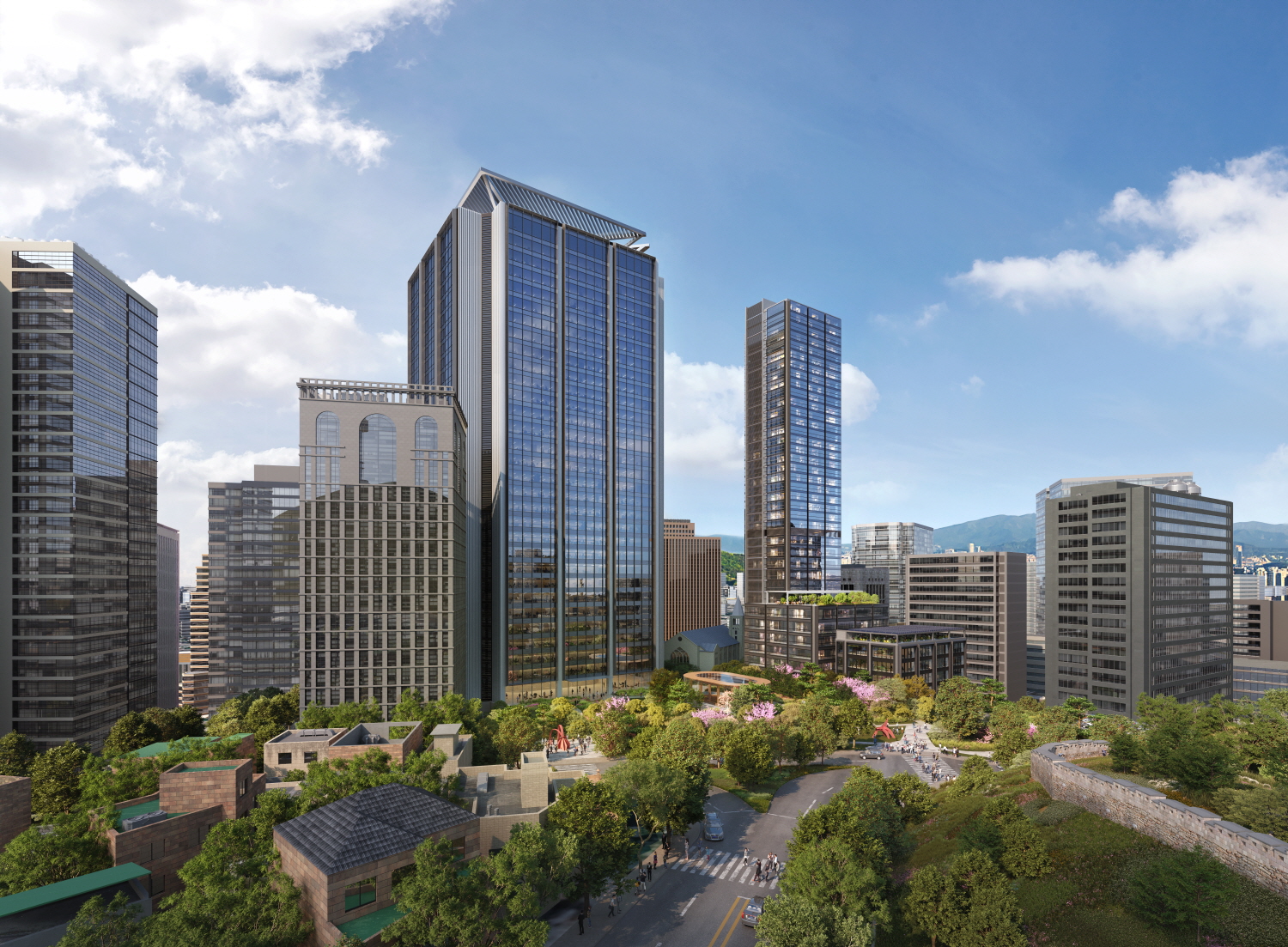 ▲ 이지스자산운용은 밀레니엄 힐튼 서울 호텔의 기존 건물을 헐고 대규모 복합시설, 이오타 서울을 개발하기로 했습니다. 지하 10층~지상 39층, 연면적 33만 8982㎡ 규모 업무시설, 호텔, 판매시설 등이 들어선다고 합니다. 2024년 12월 서울시로부터 이러한 내용이 담긴 사업시행계획 인가를 받았으며 현대건설이 시공합니다. 새로운 건물은 부지 동쪽에 위치한 남산 한양도성을 고려해 성곽으로부터 일정거리 밖으로 고층부를 위치하게 해 남산 조망을 해치지 않도록 했다고 합니다. 또한 대규모 녹지·휴게공간인 개방형 녹지를 확보해 남산으로부터 도심 녹지축이 이어지도록 했습니다.