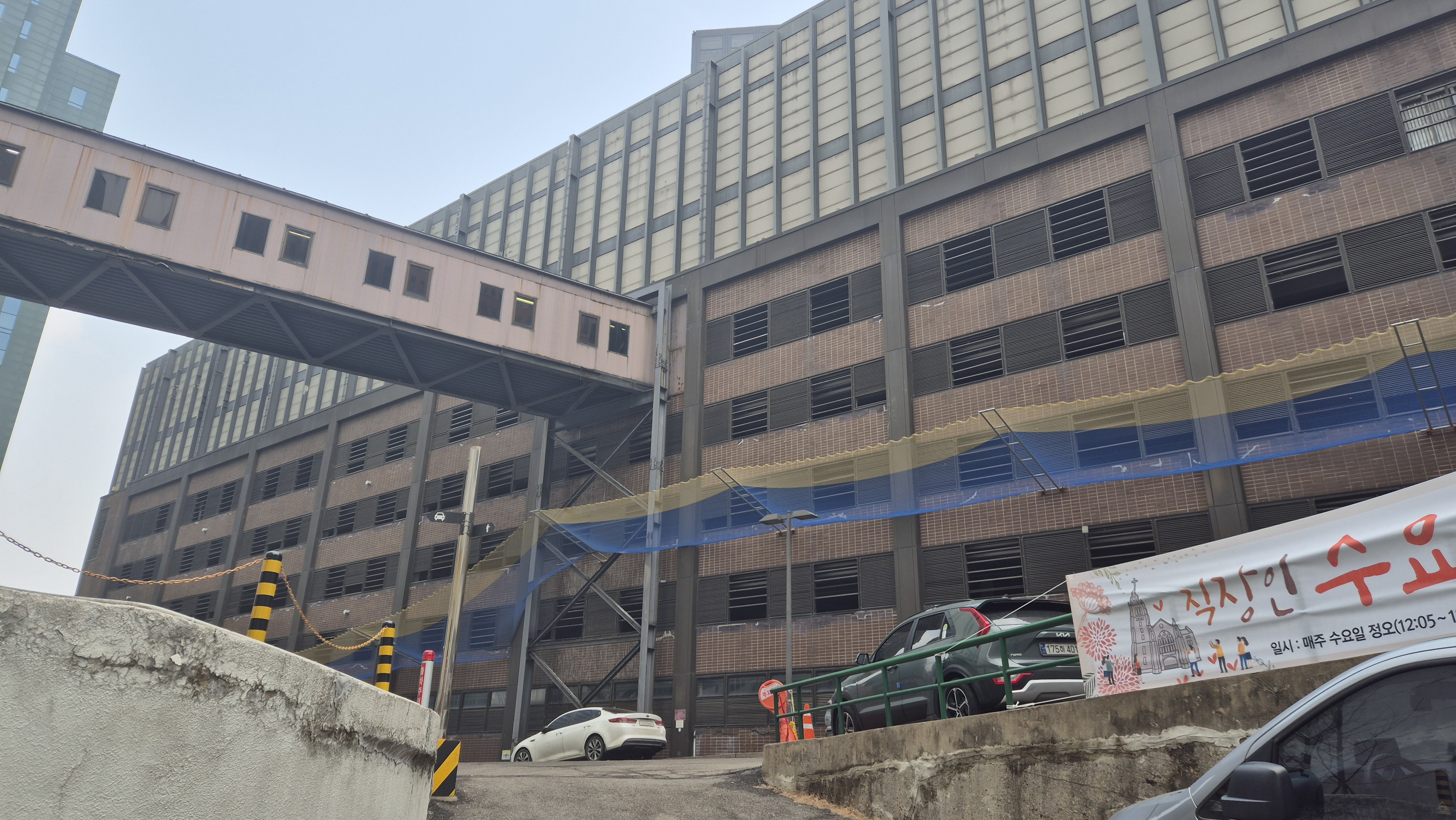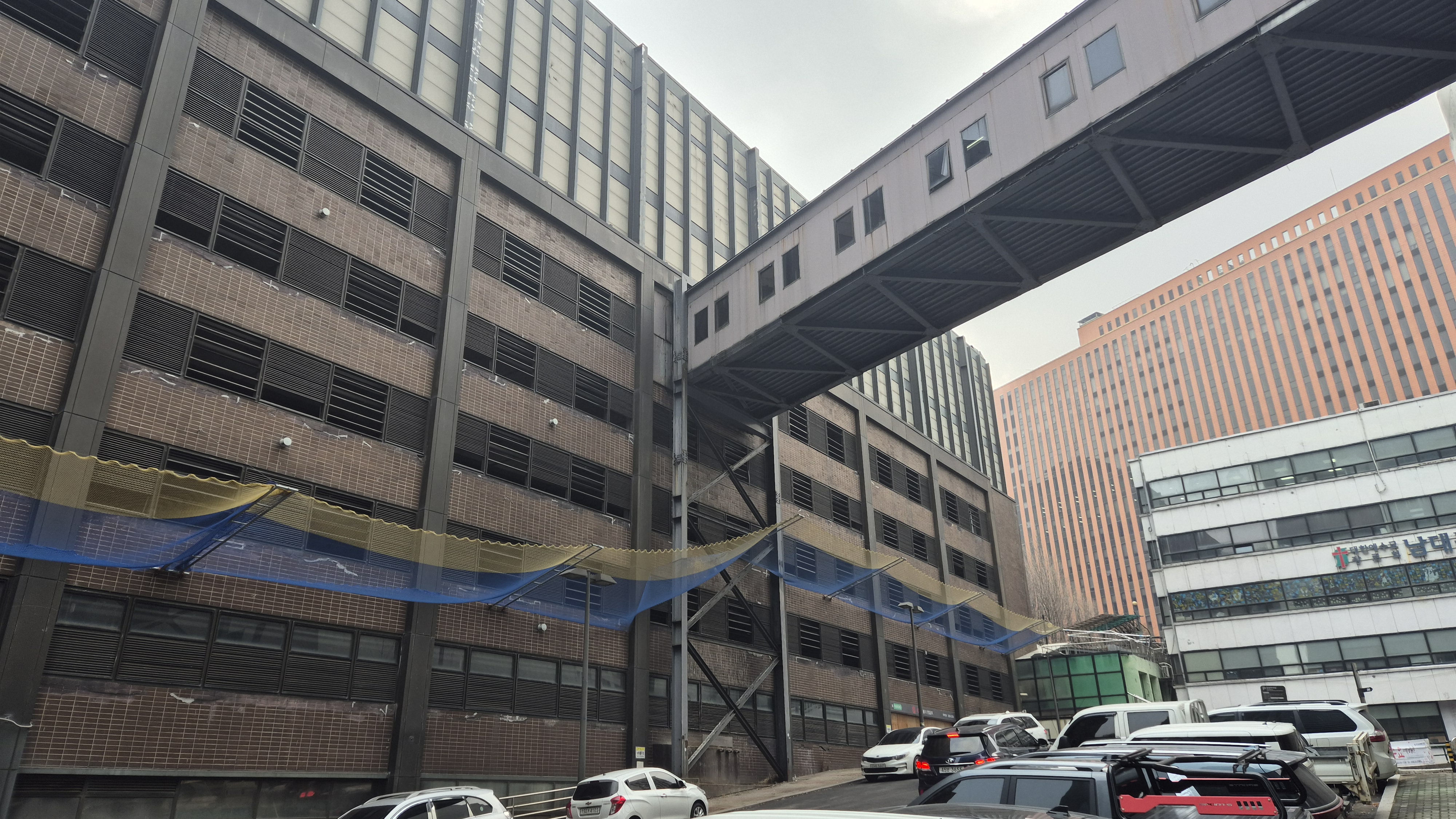▲ 밀레니엄 힐튼 서울 호텔 주차건물에는 낙하물에 의한 피해를 방지하기 위한 그물막이 설치되어 있습니다.