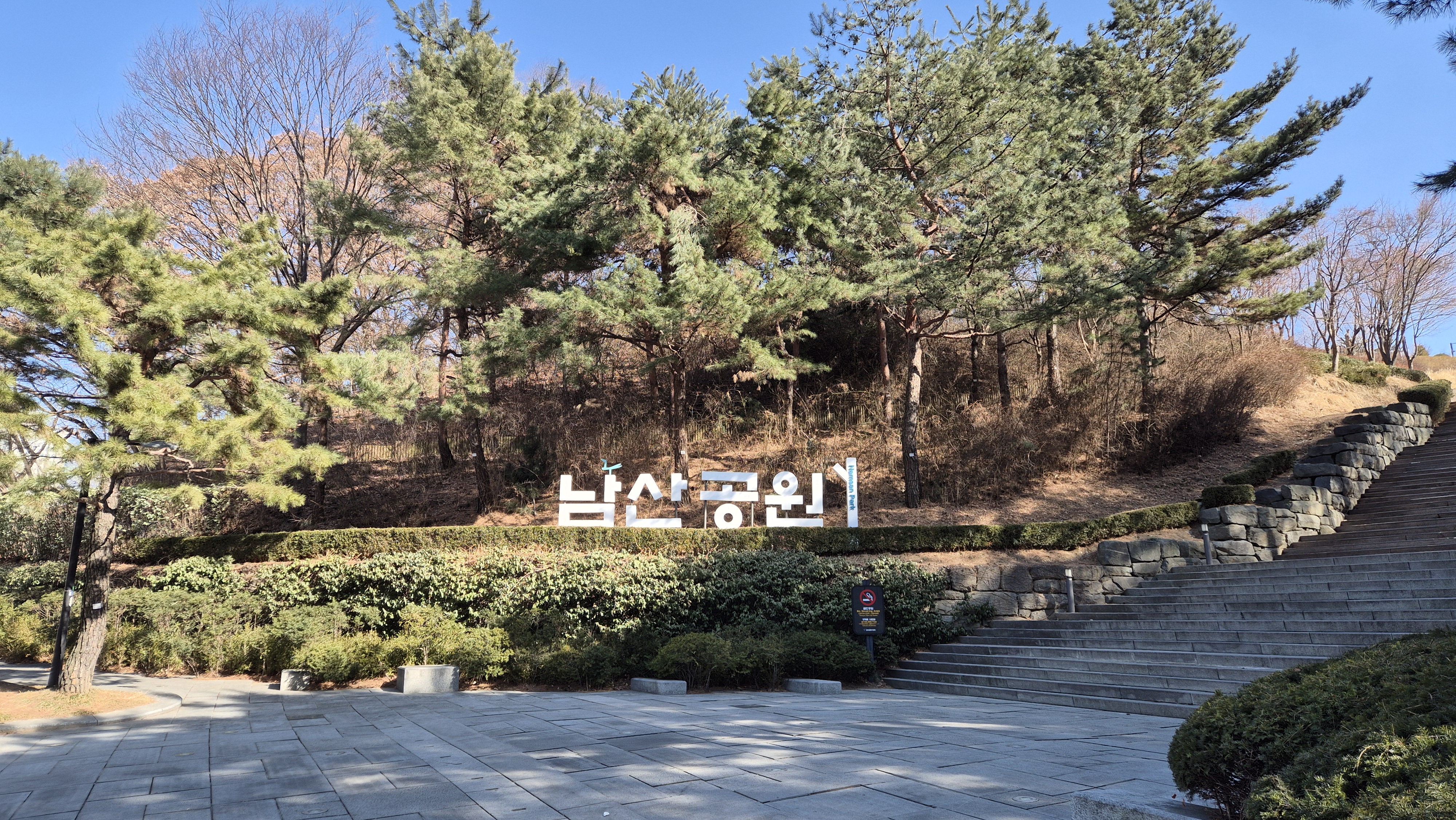 ▲ 남산 공원의 팻말이 보입니다. 호텔 앞 남산 공원은 호텔 투숙객들의 좋은 산책 장소가 되었습니다.