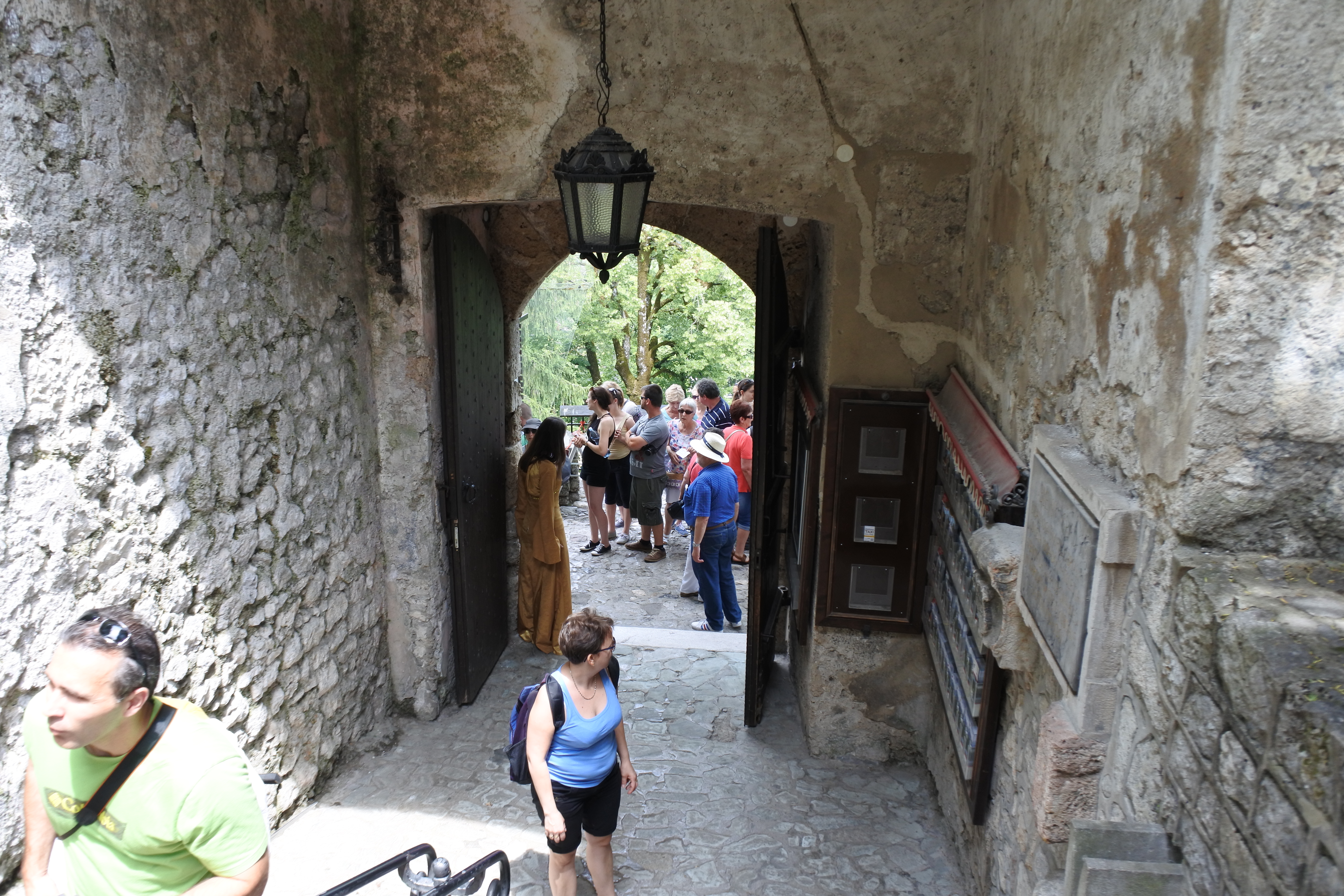 ▲ 성 안쪽에서 바라본 내성의 입구입니다. 성문 크기는 중세시대의 작은 수레 하나가 지나갈 수 있을 정도로 좁으며 작은 나무다리가 설치되어 있어 필요할 때 들어 올려 입구를 막을 수 있게 되어 있습니다. 성문 위로는 방어용 구조물이 설치되어 있습니다. 블레드 성은 절벽 위에 있어서 전형적인 성곽에서 흔히 볼 수 있는 일정 규모의 입구 다리와 해자는 설치되지 않았습니다.