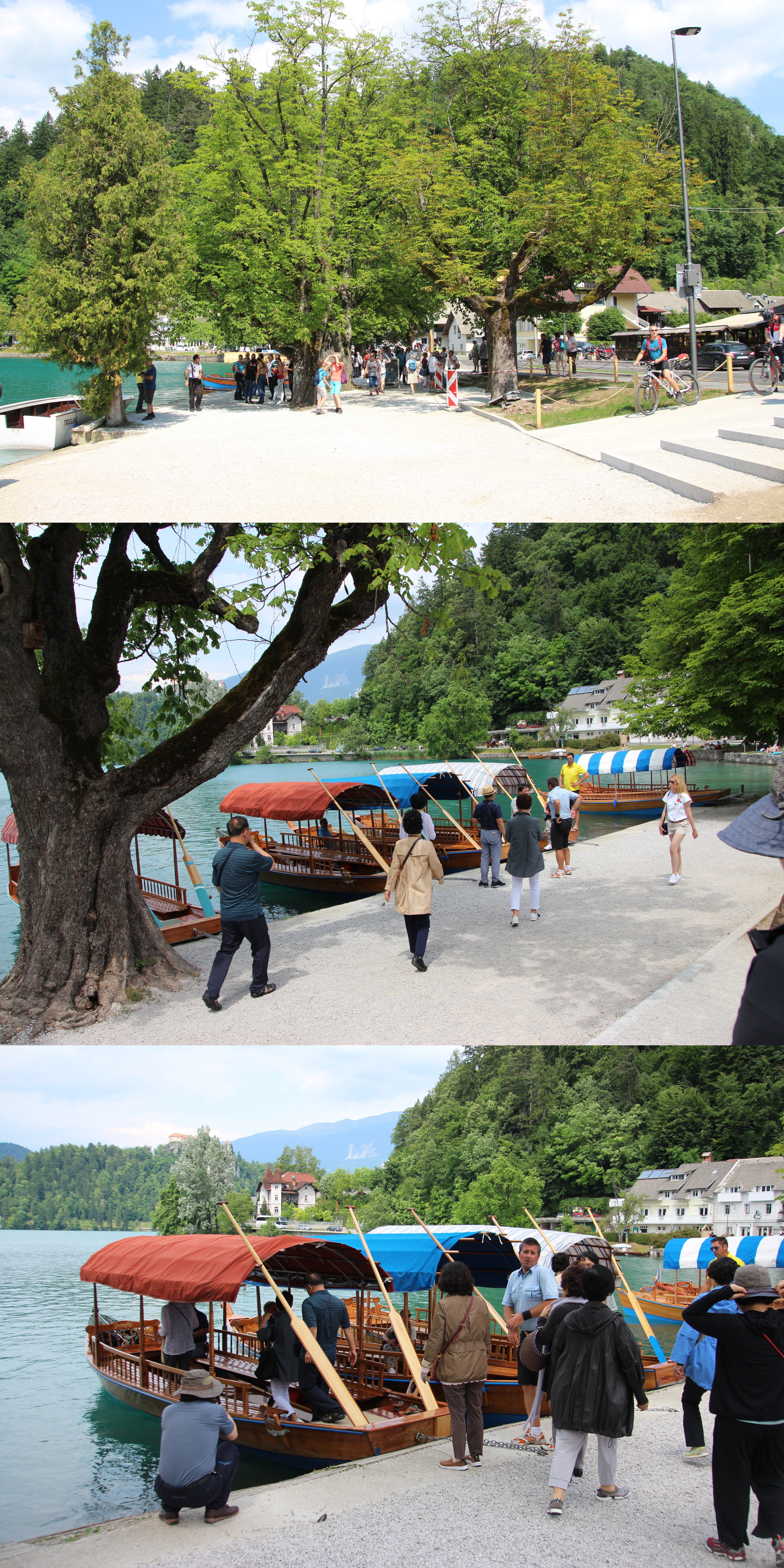 ▲ 블레드 호수(Lake Bled)에서 블레드 섬(Bled Island)으로 향하는 전통 나무 보트인 플레트나 보트(Pletna Boat)를 타기 위해 므리노 선착장 (Mlino Port)에 도착했습니다. 므리노 선착장은 다른 플레트나 보트 선착장보다 규모가 크고 주변에 숙박업소와 카페, 음식점들이 있습니다. 플레트나 보트 일반적으로 오전 9시부터 오후 6시까지 운행되며, 계절과 날씨에 따라 변동될 수 있습니다.