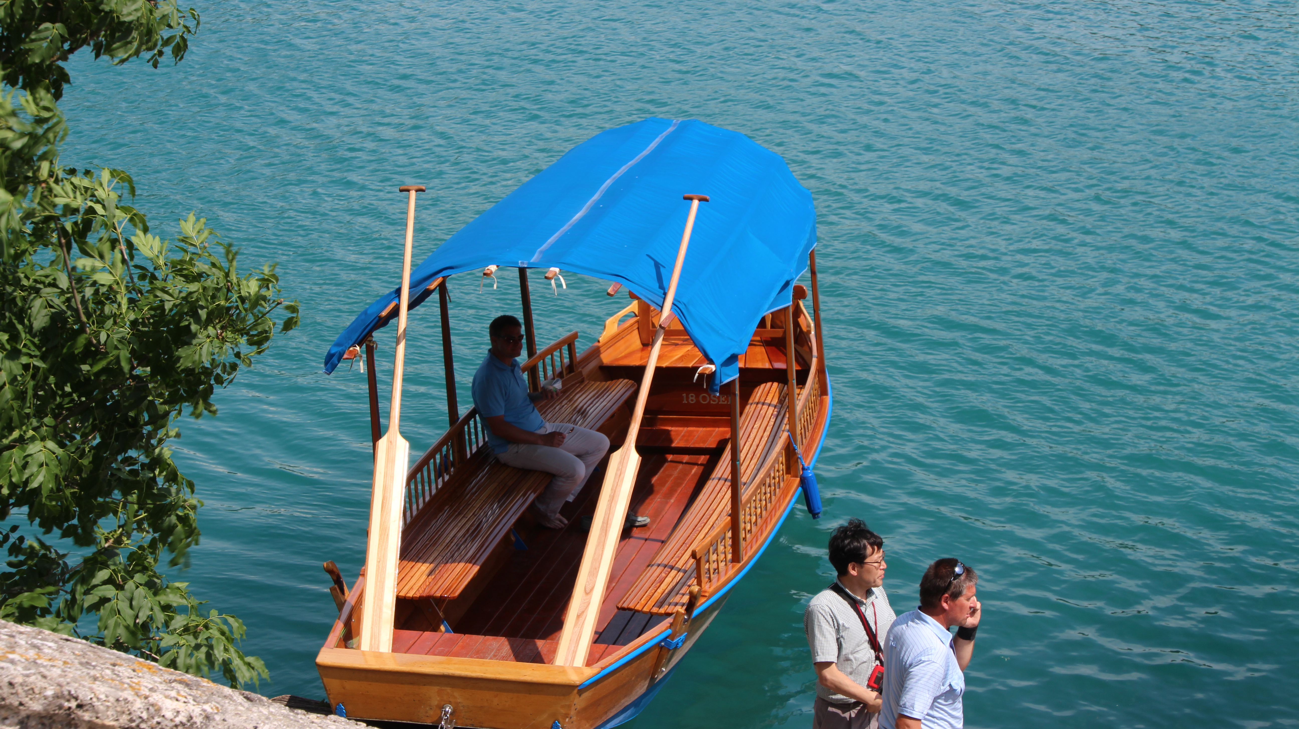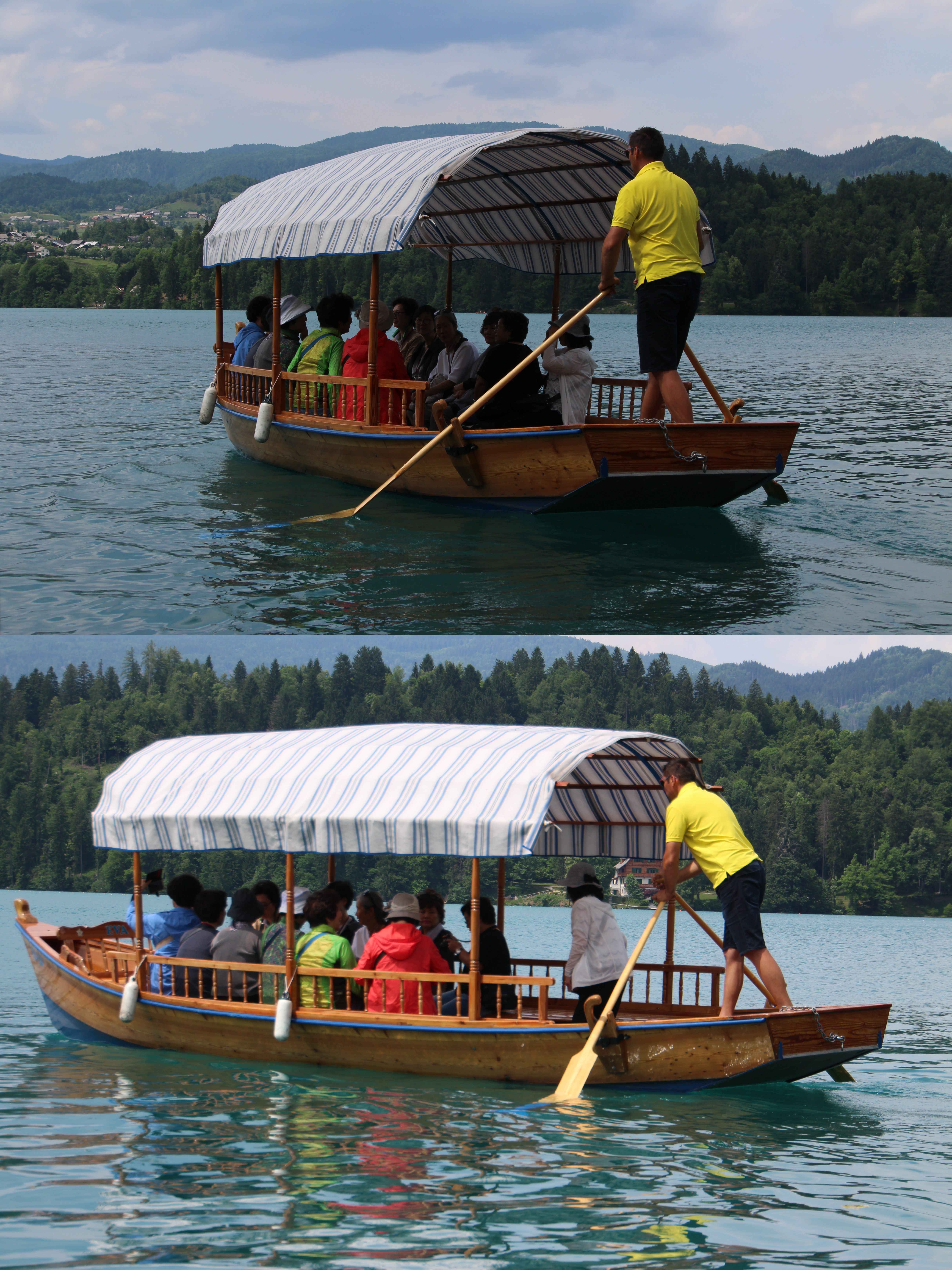 ▲ 16세기부터 사용된 전통 수공예 보트인 플레트나 보트를 타고 블레드 섬으로 이동합니다. 플레트나 보트는 대부분 현금 결제를 선호하므로, 현금을 준비하는 것이 좋습니다. 일반적으로 현장에서 탑승 인원이 모이면 출발하는 방식이지만, 성수기에는 대기 시간이 길어질 수 있으므로, 사전에 예약하거나 이른 시간에 방문하는 것이 좋습니다. 플레트나 보트 최대 20명을 수용할 수 있어 우리는 두 개의 플레트나 보트를 타고 블레드 섬으로 이동했습니다. 이용료는 2017년 일인당 15유로였으나 2025년에는 18유로로 올랐습니다.