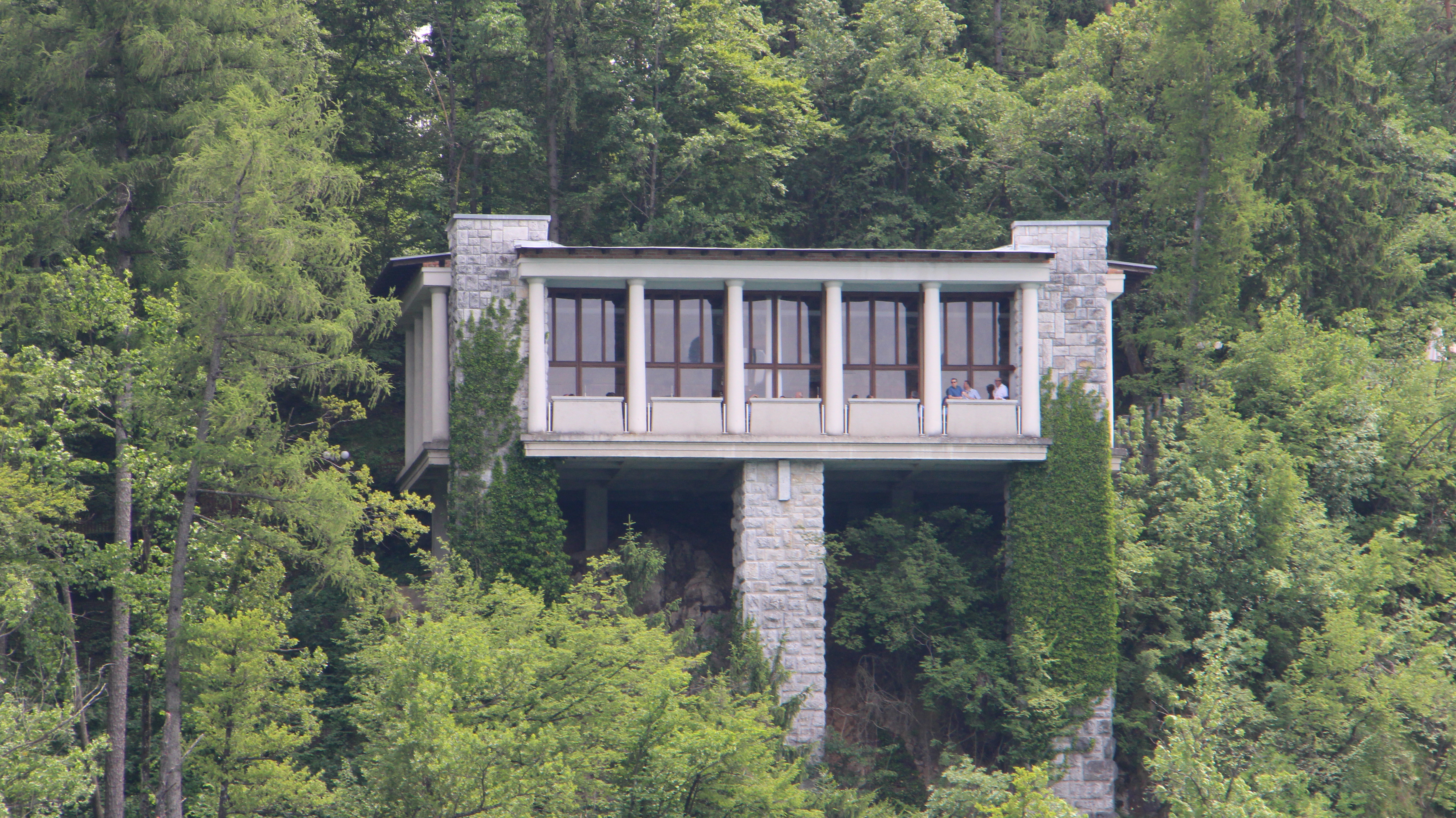 ▲ 호수 남쪽 절벽에 멋있는 건물이 하나 보입니다. 저 건물은 카페 벨베데레(Café Belvedere)라는 역사적인 카페로 아름다운 자연경관과 고풍스러운 분위기로 유명합니다. 빌라 블레드가 운영하는데 매년 5월 초부터 9월 말까지 영업을 한다고 합니다.
